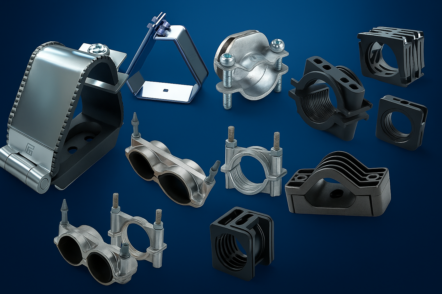 Cable cleats are essential components used to secure and support electrical cables in place, preventing movement caused by short-circuit forces, vibrations, or mechanical strain. They ensure the safety and stability of cable installations, particularly in high-voltage or heavy-duty applications. Used across power plants, substations, tunnels, and industrial facilities, cable cleats help maintain proper cable alignment and protect cables from damage during operation or fault conditions.