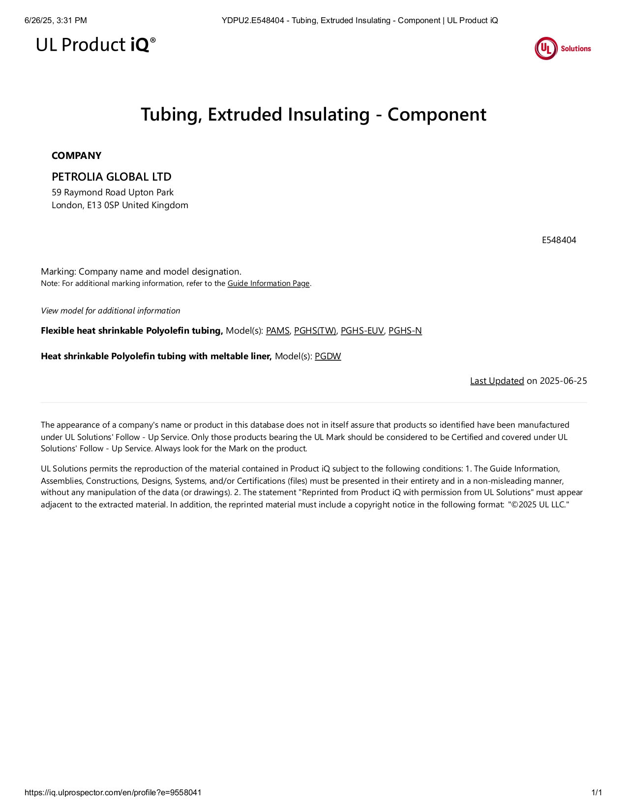 Heat Shrink Tube UL